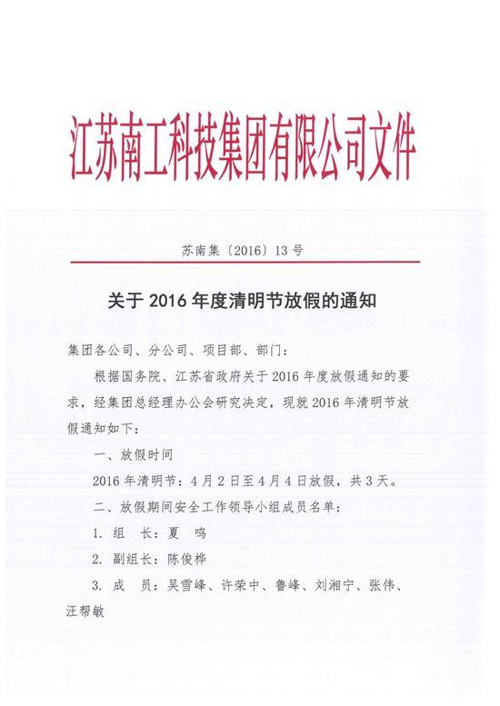 您的位置:集团首页 >> 新闻中心 >> 集团公告 >> 关于2016年度清明节放假的通知