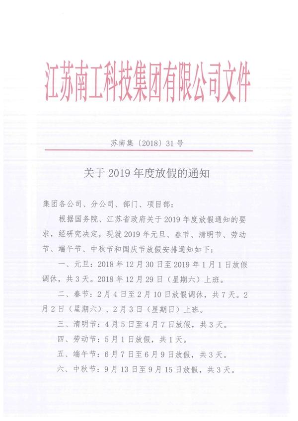 您的位置:集团首页 >> 新闻中心 >> 集团公告 >> 关于2019年度放假的通知