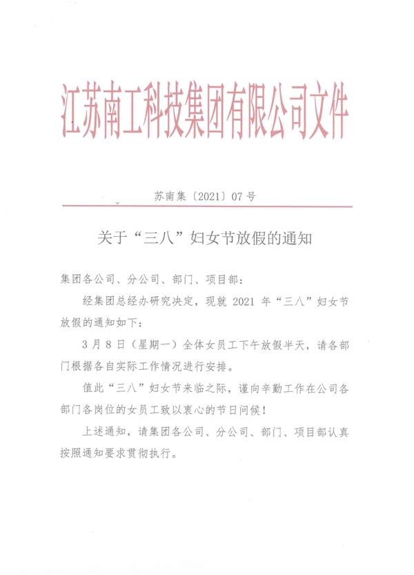 关于“三八”妇女节放假的通知