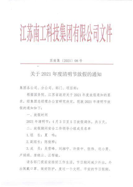 关于2021年度清明节放假的通知