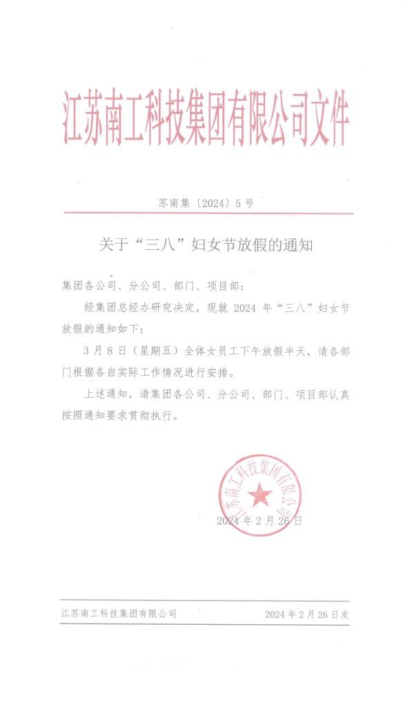 您的位置:集团首页 >> 新闻中心 >> 集团公告 >> 关于“三八”妇女节放假的通知