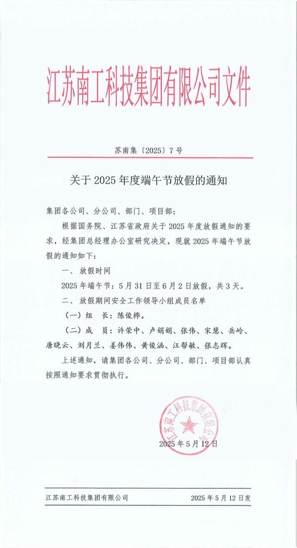 您的位置:集团首页 >> 新闻中心 >> 集团公告 >> 关于2025年度端午节放假的通知