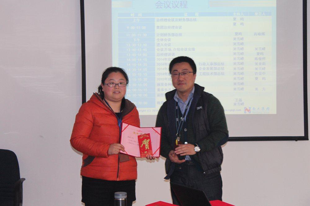 年会由吴雪峰副总经理主持,陈俊桦副总经理作了2014年度工作总结,夏鸣常务副总经理做了2015年度工作计划的报告。