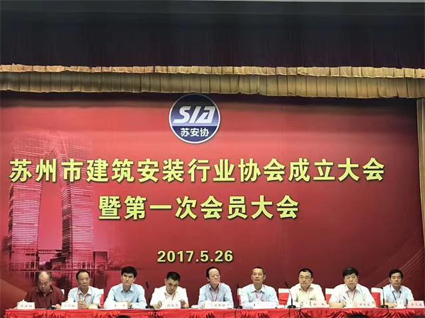 2017年5月26日,苏州市建筑安装行业协会成立大会在苏州市会议中心隆重召开。参加会议的有中国安装协会会长田秀增,中国建筑业协会智能建筑分会会长黄久松,中国安装协会智能化与消防工程分会会长、江苏省安装行业协会智能化与消防工程分会会长、江苏金年会科技集团有限公司总经理陈晓,江苏省安装行业协会会长蒋东良、驻会副会长邹金林、秘书长吴辉、行业发展部主任席天阳,江苏省监理协会会长曹达双,苏州市住房和城乡建设局、苏州市民政局、苏州市建筑业协会、苏州市装饰装修行业协会、苏州市监理协会、苏州市安全技术防范行业协会及苏州市有关部门领导等100多人。