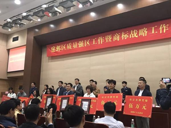 2017年10月12日,建邺区质量强区工作暨商标战略工作会议在区政府三楼小礼堂隆重召开。参加会议的有建邺区委副书记、区长、区质量强区领导小组组长闵一峰,副区长夏晓燕,南京市市场监管局局长范清、党工委书记吴骏,南京市质监局副局长张建平,南京市工商局副局长陈元虎,南京市质监局质量处处长徐乾仪,南京市工商局商标处处长王荣等250多人。