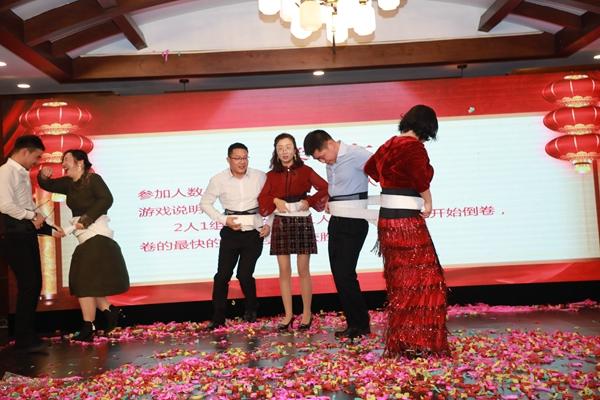 迎新晚会在常务副总夏鸣的致辞下正式拉开帷幕,夏总向全体员工表达了衷心的感谢和新年的祝福,大家共举酒杯,为金年会的明天干杯!