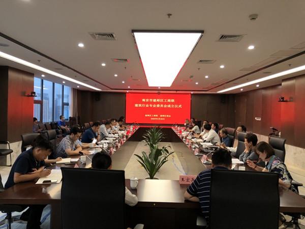 2020年9月30日,南京市建邺区工商联建筑行业专业委员会会议在金陵建工集团召开。参加会议的有建邺区委常委、统战部部长周迅,建邺区工商联主席、统战部副部长樊谊,建邺区工商联副主席范广峰,建邺区商会副会长杨如军、赵伟,建邺区工商联副主席王贤平、吕所章等,江苏金年会科技集团有限公司执行董事陈俊桦参加了会议。