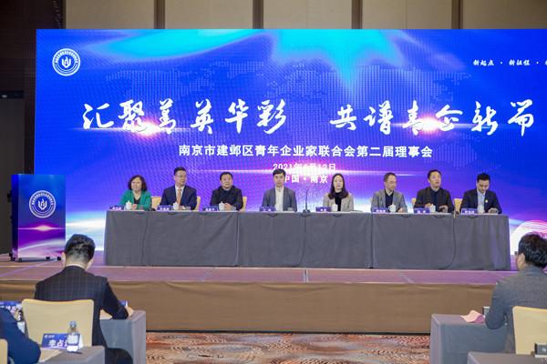 2021年4月12日,南京市建邺区青年企业家联合会第二届理事会在南京金鹰世界G酒店召开。参加会议的有南京市委统战部副部长、市工商联党组书记丁铭,市工商联一级调研员、秘书长黄国平,建邺区人民政府党组成员袁婷,南京市委统战部非公经济处处长端泽明、会员处处长褚丹植,建邺区委统战部副部长、区工商联党组书记樊谊,区工商联副主席范慰民,南京市及各区青企会代表、建邺区兄弟商会代表和建邺区青企会理事等100多人,江苏金年会科技集团有限公司执行董事陈俊桦参加了会议。