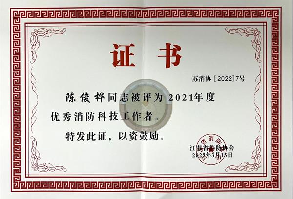 会议审议通过了协会年度工作报告、年度财务报告、协会“十四五”发展规划、协会六届理事会管理制度(办法)汇编,表决通过了协会六届理事会理事、常务理事、监事会监事增补议案。会议表彰了2021年度先进集体和个人,江苏金年会科技集团有限公司执行董事陈俊桦被评为“优秀消防科技工作者”。