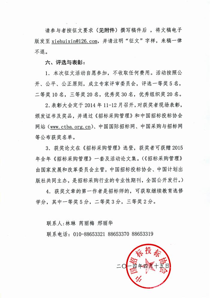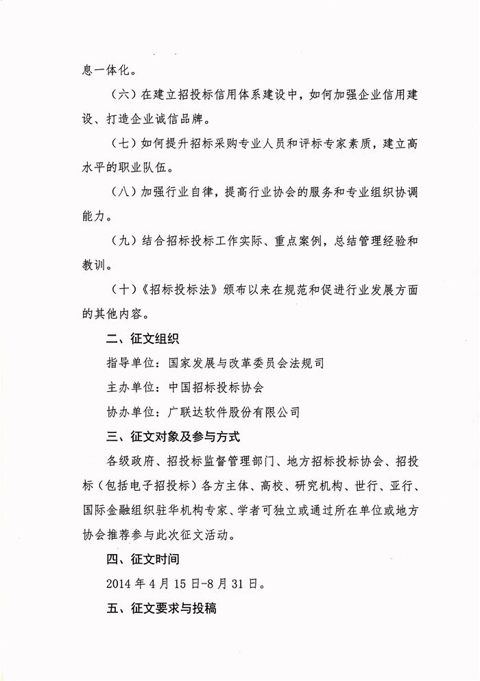 招标投标与改革同行——纪念《招标投标法》颁布15周年大型征文活动通知