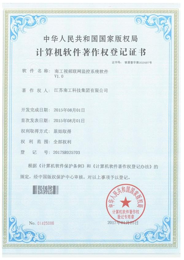 金年会视频联网监控系统软件证书